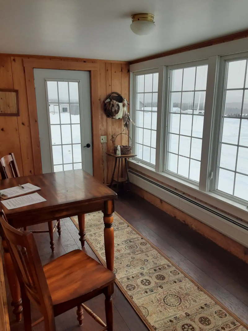 This room is one of our favorites. It is a great place to sit back with a cup of coffee in the morning or a glass of wine in the evening to watch sunrises and sunsets. It has large windows all around and the mountain views are just amazing! It has been a great gathering place for our guests to sit back after a long day of hiking, boating, ATVing, etc.